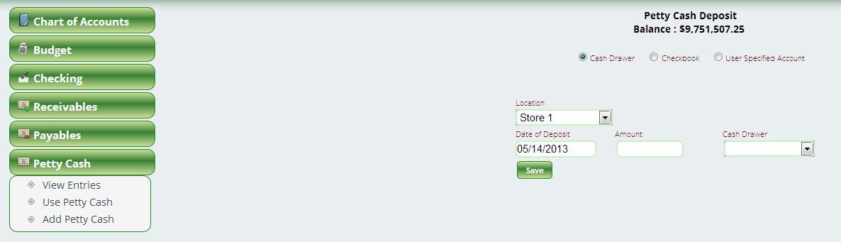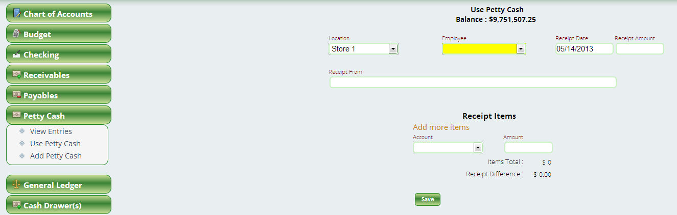 By using the Petty Cash module, you allow the system to keep up with how much you have in your petty cash account and what it is being used for throughout the year.