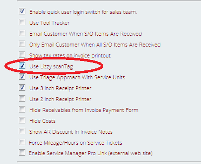 As many of you may already know, Lizzy supports the use of unique barcodes (called scanTags) that allow you to immediately scan and create a service ticket for a major unit. This can significantly cut down on the time needed to begin a service ticket, since by using scanTags you do not need to find the customer, only confirm that the scanned tag has identified the correct unit. You can purchase scanTags from nizeX, or you have the option to purchase your own durable barcode labels elsewhere. You can also choose to use the VIN/barcode already provided on the product. The vital thing to remember is that each barcode must be a unique number in order for Lizzy to properly track your units.