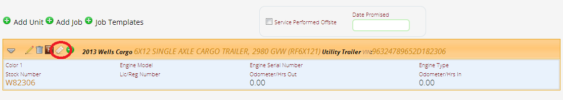 Once you have the service ticket linked to the correct customer, add the customer’s unit to the invoice. You should now see a special icon that looks like a ticket displayed on the invoice that will allow you to “Assign a scanTag.”