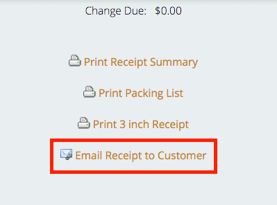 The process for emailing invoices is the same whether it’s immediately after a sale or months afterward. If there is only one email address on the customer’s record, then clicking the “Email Receipt” link will send the invoice automatically. If there are multiple emails on the record, you will need to select the specific email address you’d like to send the invoice to.
