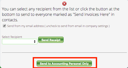 Now each time we finalize an invoice for Bob’s company, instead of always choosing Bob’s name under the drop down list, we’ll pick the button marked “Send to Accounting Personnel Only.” This will send the invoice to the primary contact on the account, along with anyone else who is marked as “Invoices Here.”