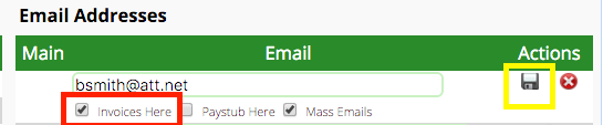 Next click the checkbox marked “Invoices here.” Be SURE to click the Save button!