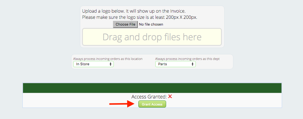 - Click on the radio button beside the Channel Advisor webstore interface. At the bottom of the page, click on the button labeled “Grant Access.”