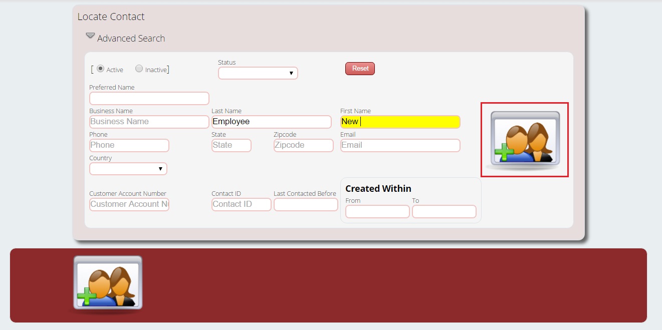 Step #1: Locate the employee by going to Contacts > Locate Contact. We first want to enter their information in the locate screen, to ensure that they aren’t already in the database. Enter in their first & last names. (Note: Lizzy has a real-time search, so as you type, Lizzy will be narrowing down the search results based on what you enter. You can skip entering the entire name if you see the correct contact record appear.) If the employee already has a contact record, please proceed to Step #2. If not, click the add contact button.