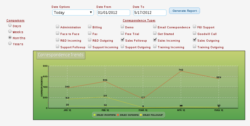 Not only is it important to keep watch on your customers, most business owners would like to see how there staff is performing, and how they compare to each other. In Lizzy CRM, you are able to run real time reports on employees. See how your sales team compares to other departments, or how many new customers you have this month compared to last.